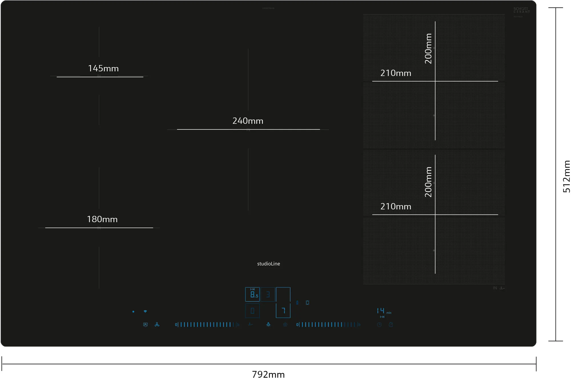 | Kochzone 4 Größe (B x T): | 200 x 210 |